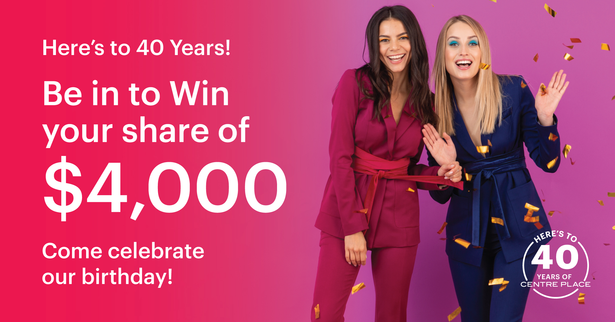 Spend $80 or more in Centre Place, fill out the online form by clicking the link above for your chance to WIN*